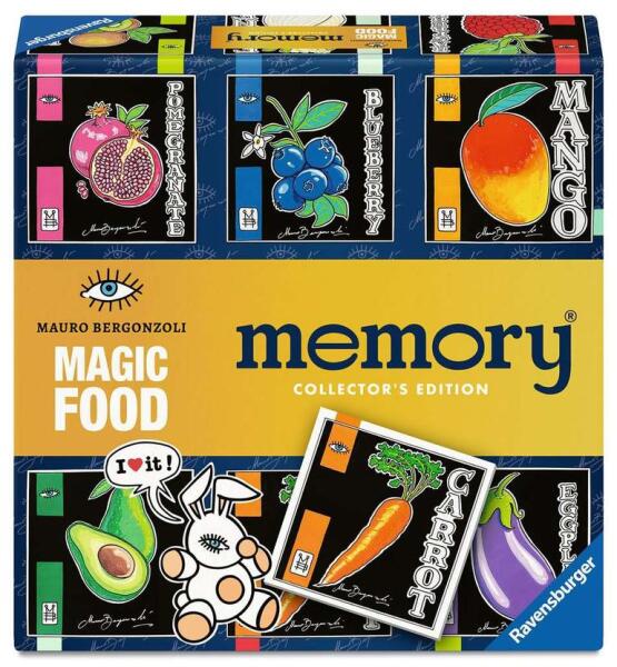 Ravensburger 24819 - Mauro Bergonzoli Collectors Edition memóriajáték varázslatos ételek képeivel! A memóriajáték lényege, hogy a játékosok a kártyákat kettesével felfordítgatva megtalálják a megegyező kártyapárokat. A játéknak akkor van vége, ha elfogynak a lefelé fordított kártyák. Az a játékos győz, aki több párt talál. Fejleszd memóriádat és megfigyelőképességedet ezzel a vagány illusztrációkat felsorakoztató memóriajátékkal!